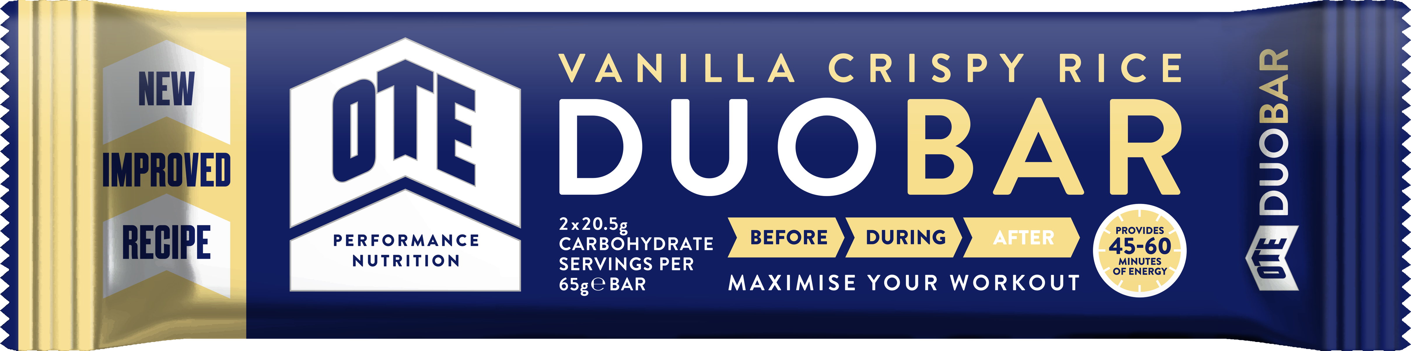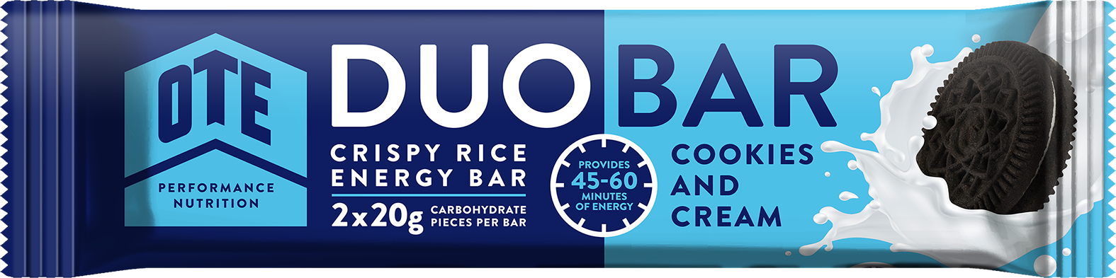 Новый улучшенный батончик OTE Sports DUO Bar был разработан совместно с профессиональными велосипедными командами, чтобы воспроизвести концепцию «рисового пирога», использовавшуюся в гонках World Tour. Каждый батончик DUO предварительно нарезан на две равные части, каждая из которых содержит 20 г углеводов. Это делает DUO Bar очень простым в использовании в рамках энергетической системы OTE Sports. Батончик DUO Bar был разработан так, чтобы обладать прекрасным вкусом, легко усваиваться, не вызывать тяжесть в животе. Отличная альтернатива твердой пище, энергетическим напиткам и гелям. Кроме того, батончики DUO Bar теперь не