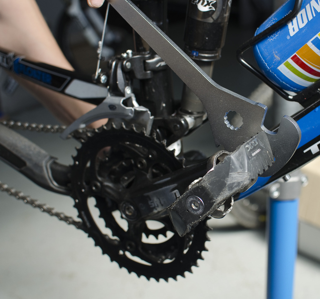 Ключ педальный Unior Profi 1613/2BI. Профессиональный педальный ключ имеет три 15-миллиметровых паза, расположенных под разными углами, так что пользователь может легко и быстро демонтировать педаль вне зависимости от положения оси педали. Исполнение ключа обеспечивает длительное использование, прочность и точность выполняемой работы. Удлинённая рукоятка позволяет развивать усилия, достаточные для снятия даже очень туго прикрученных педалей.