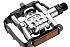 Универсальные педали, для установки на велосипеды используемые как для езды в городской обуви, так и контактной. Односторонняя плошадка под шип Shimano SPD совмещена с полноценной платформой с шипами обратной стороны. Прочный, полностью металлический корпус, надежная система конусов промышленных подшипников для простой эксплуатации и обслуживания, регулировка силы сжатия пружины замка шестигранным ключом.