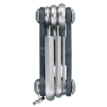 Сверхкомпактный дорожный набор инструментов с кольцом-креплением. 6 инструментов на легком алюминиевом основании.