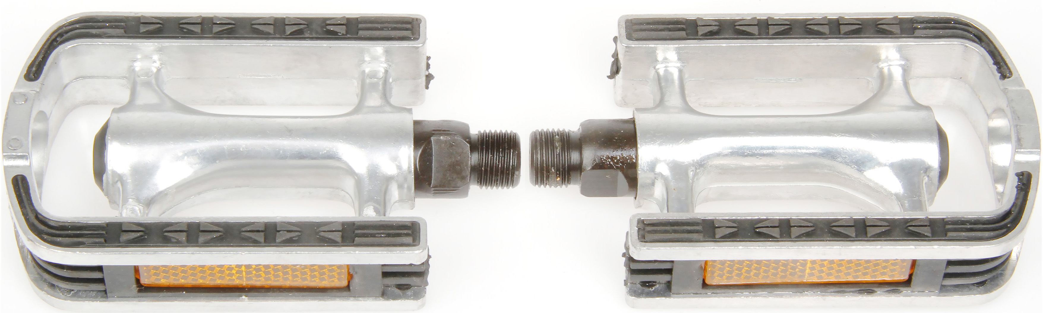 Педали ACME для городских, туристических и прогулочных велосипедов. Корпус целиком выполнен из алюминия с прорезиненной поверхностью платформы, препятствующей соскальзыванию ноги. В торцы вмонтированы отражатели-катафоты, повышающие заметность при перемещении в темное время суток.
