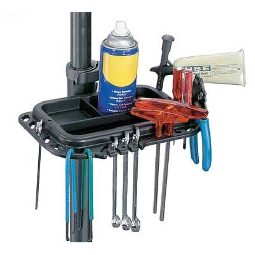 Прочная пластиковая подставка для инструментов и мелких запчастей, которую можно закрепить на фирменных стендах Topeak PrepStand Pro/Elite/Race.- 259 x 305 x 66 мм