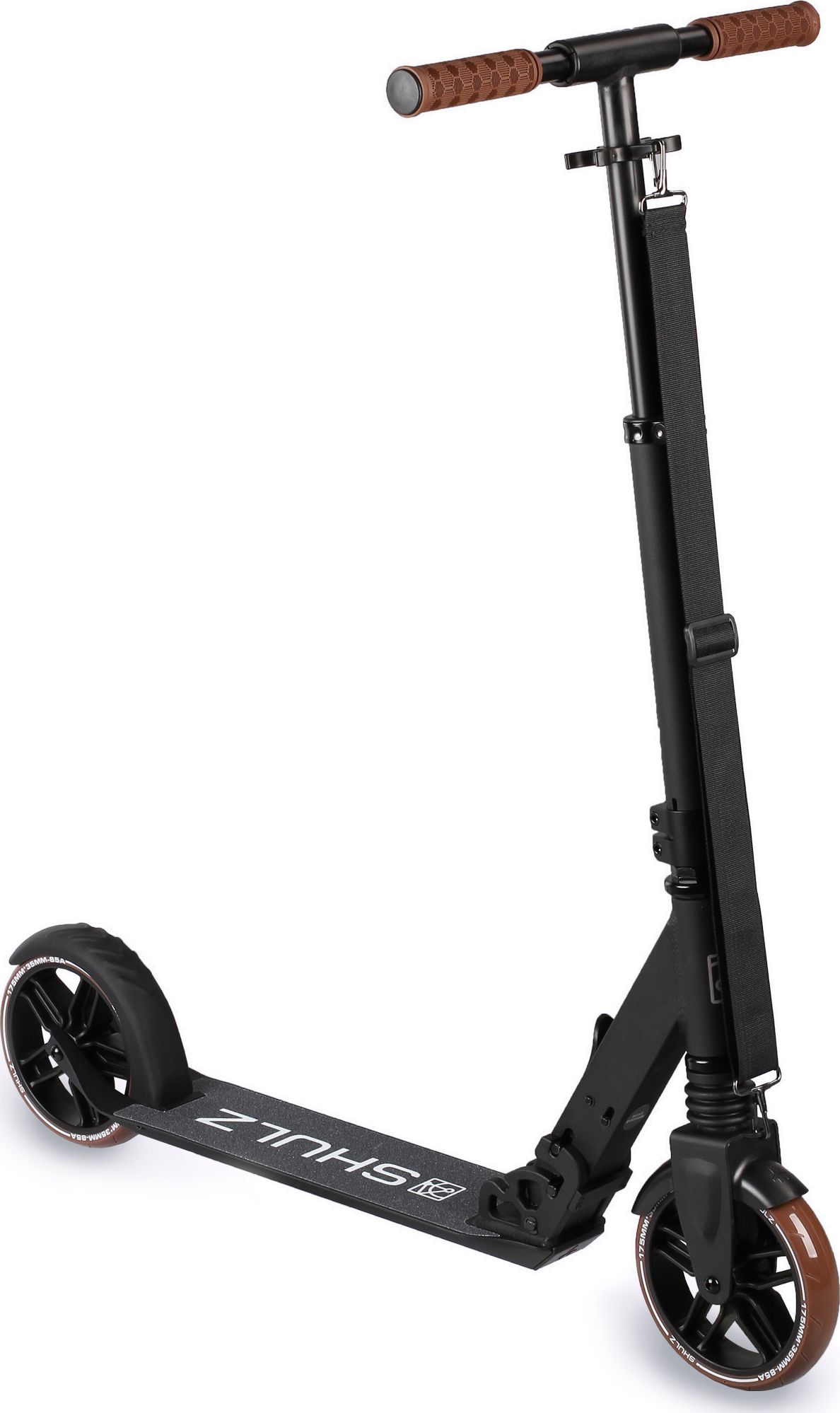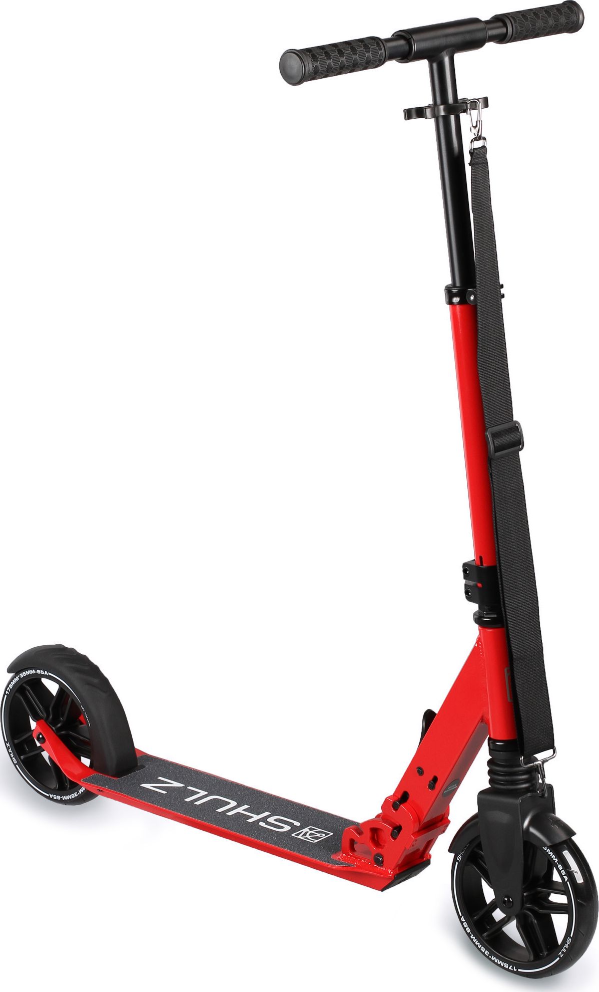 Мы позаботились о вашей безопасности: антискользящая поверхность деки, нескользящие резиновые грипсы с ребристой поверхностью и надежный ножной тормоз позволят получить максимум удовольствия от катания. Благодаря ремню удобен в переноске — если вы устали, то можно доехать до метро или автобуса, сложить самокат, повесить на плечо и продолжить дорогу дальше.