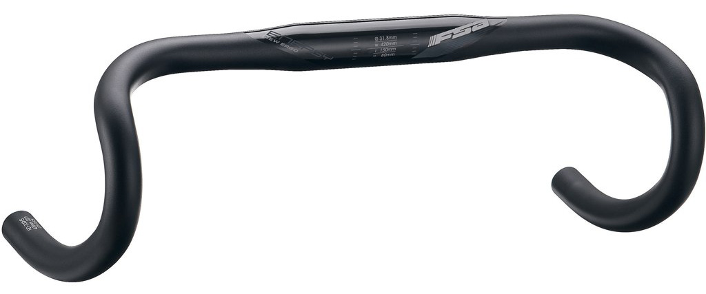 Шоссейный руль верхней алюминиевой серии FSA ENERGY Ergo. Данная модель интересна своей геометрией с укороченным вылетом и средней, между классической и компактной, глубиной, что характеризует руль как новую гоночную породу. Концы нижних хватов имеют небольшой загиб наружу для максимальной уверенности в спринтах и на скоростных спусках. Поверхность руля анодирована в черный цвет, имеет бархатистую фактуру, центральная часть - глянцевая полированная. Вкупе имеем топовую деталь с замечательными характеристиками и классическим строгим внешним видом.