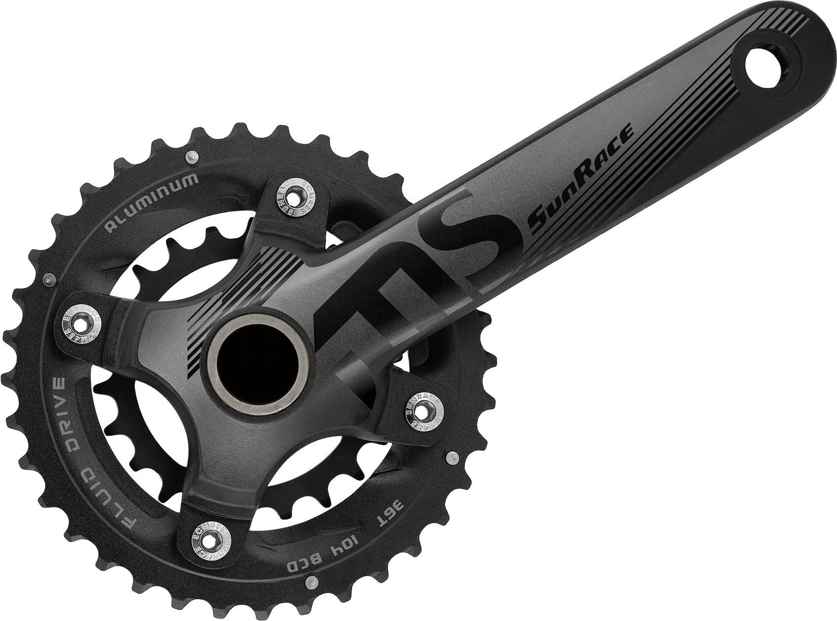 Шатуны SunRace MS04 выполнены методом холодной ковки из алюминия 6061. Полый вал системы стандарта Integrated ISIS (Ø 24 мм) изготовлен из хром-молибденовой стали. Система имеет современный компактный набор звезд, позволяющий подобрать комфортную передачу как для пересеченной местности, так и прямых асфальтированных участков. Система комплектуется кареткой на промышленных подшипниках SunRace BBM97 со стандартной BSA резьбой.