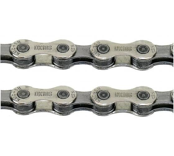 Стандартная цепь для десятискоростных трансмиссий. Именно по таких лекалам на заводах KMC изготавливают цепи Shimano - фирменные приплюснутые оси для лучшей прочности, многоразовый замок в комплекте, никелировка внешних пластин, повышенная стойкость к износу. Уровень Shimano Deore-SLX.Цепь KMC DX10S (Shimano) с замком