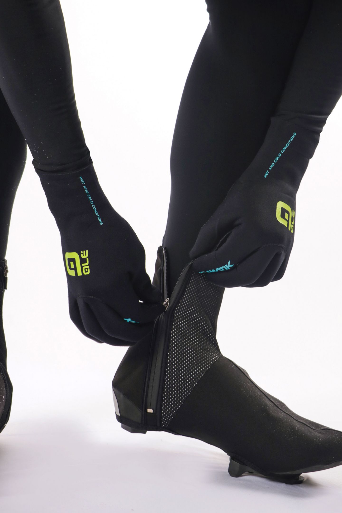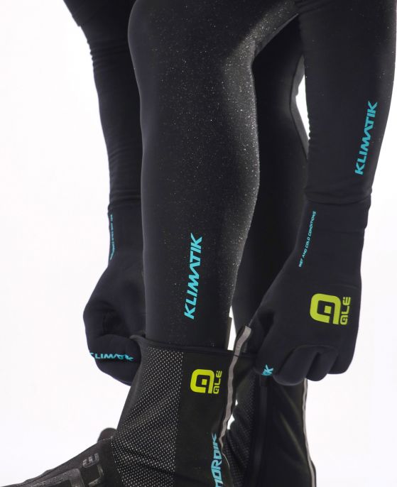 Бахилы для тренировок в холодную и ветреную погоду Ale Nordik. Изготовлены на основе легкой, эластичной ткани, имеющей замечательные ветро-влагозащитные свойства. Для удобства надевания имеют молнию со внутренней стороны голени. Светоотражающие элементы для безопасной езды в темное время суток. На подошве имеются усиления, способствующие долговечности. Использование преимущественно с шоссейными педалями.
