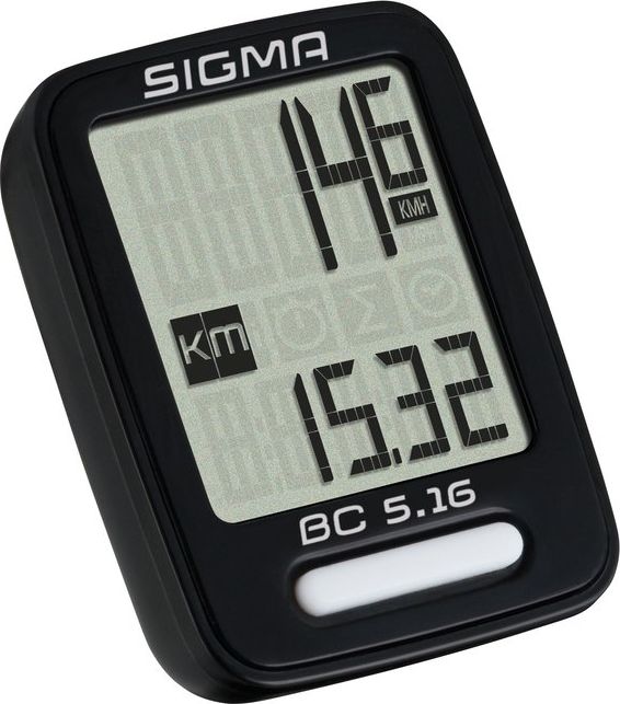В SIGMA BC 5.16 вы найдете пять важнейших велосипедных функций, заключённых в одном небольшом устройстве. Несмотря на компактный размер, дисплей BC 5.16 крупно и четко отображает пять наиболее важных функций. Вы можете использовать большую кнопку для быстрого и легкого переключения между информационными дисплеями.