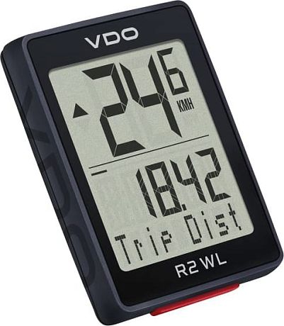 Простой в обращении беспроводной велокомпьютер VDO R2 WL. Влагозащищенный корпус, сохранение данных при быстрой замене батареи, крупный двухстрочный дисплей, индикатор разряда батареи. Постоянная память на общий пробег велосипеда, суммарное время поездки и диаметр колеса. Выпускается в проводной модификации VDO R2 WR. Оптимальная дистанция до датчика скорости 75 сантиметров.
