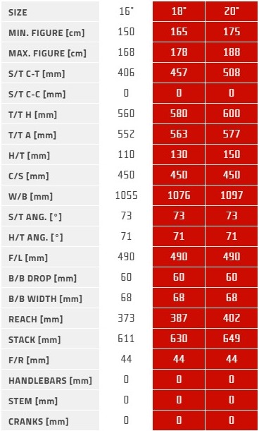 | Заявленный вес: | 13,7 кг для ростовки 20" |