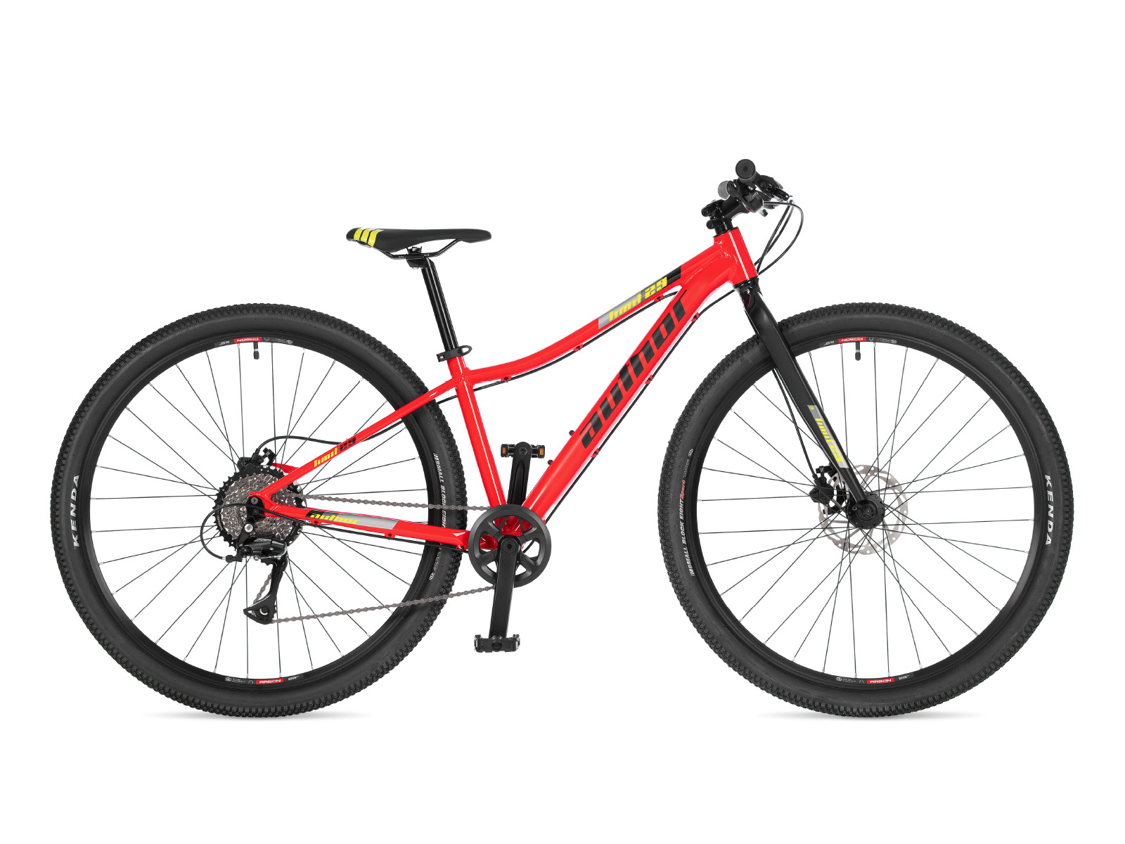 Ободные тормоза при своей дешевизне и простоте в обслуживании обеспечивают эффективное торможение, а покрышки Kenda Small Block 8 шириной в 2,10" гарантируют необходимое сцепление и обеспечивают хороший накат.