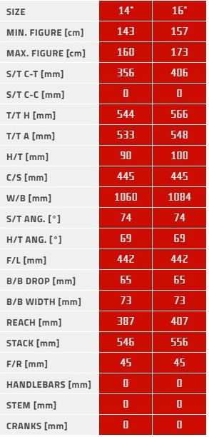 | Заявленный вес: | 11,7 кг для ростовки 14" |